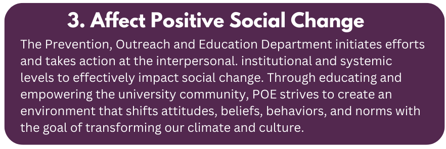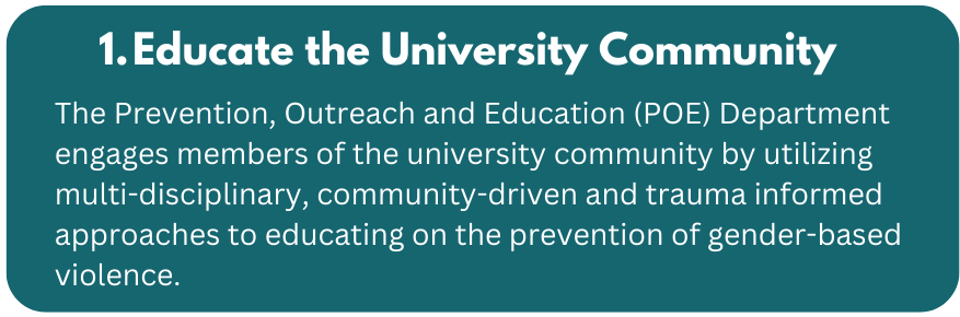 - Uplifting the potential impacts of gender-based violence rooted in systems of power and privilege to deepen university community understanding [of this type of violence].